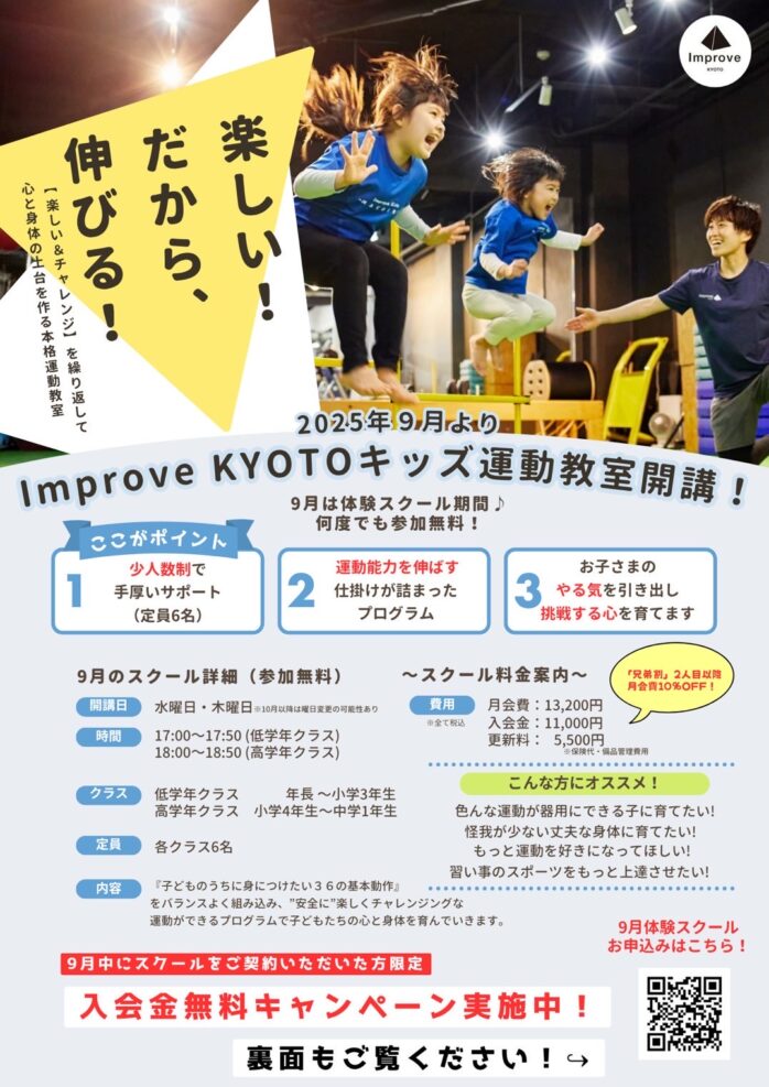 この度、『Improve KYOTOキッズ運動教室』のスクール化が決定致しました!👏