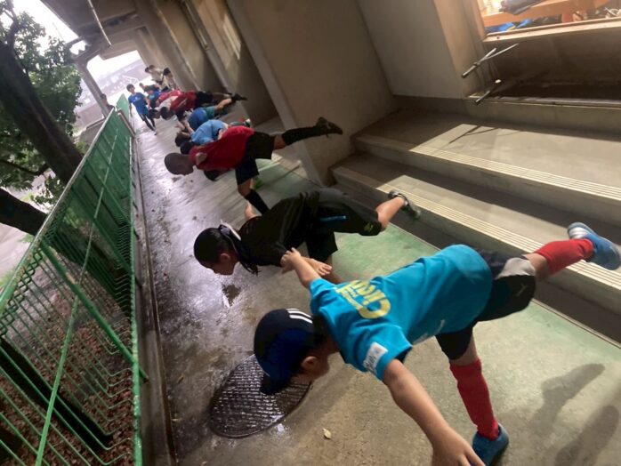 予定では運動能力を診断する「伸びしろ診断」を開催する予定でしたが、まさかの大雨でグラウンドでのトレーニングができず、