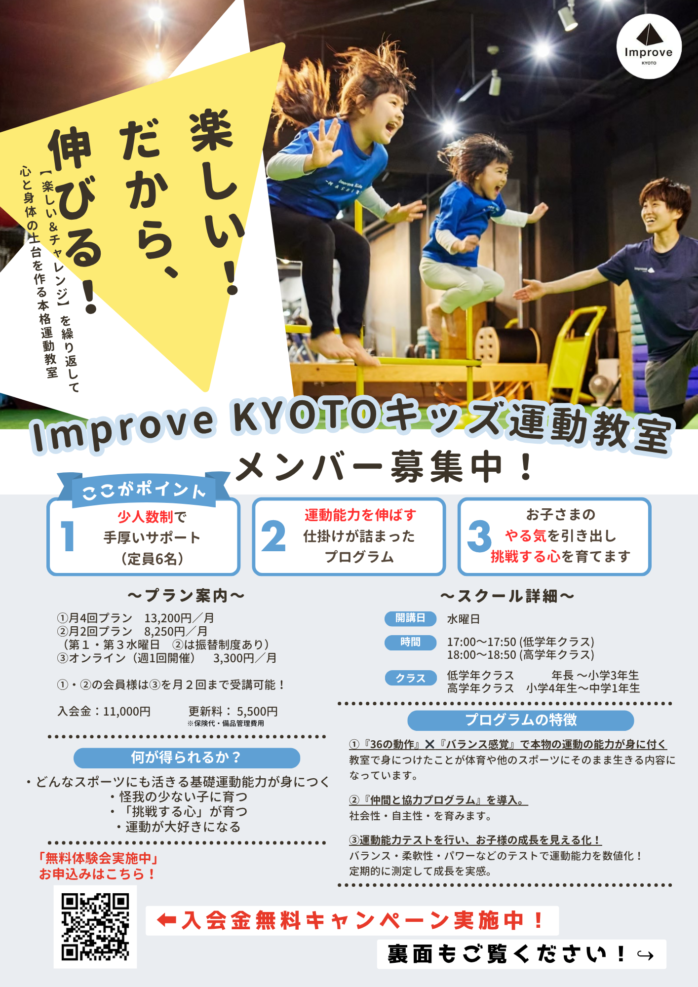 Improve KYOTOキッズ運動教室は2026年度新規メンバーを募集しています!!